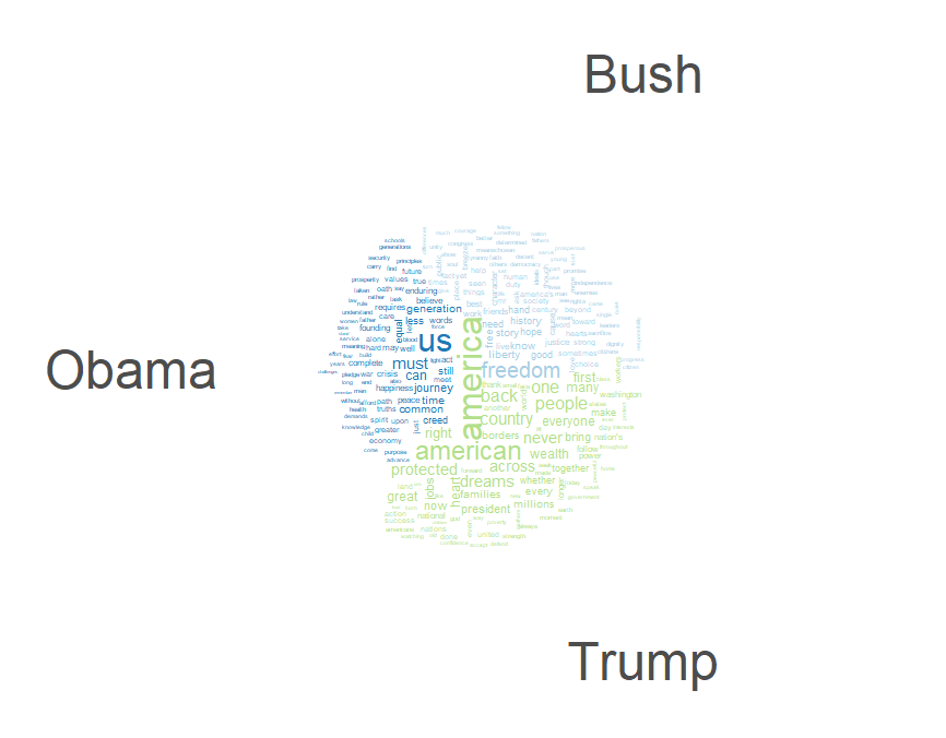 This can also be broken out by president, with Bush, Obama, and Trump’s most frequent words seen below.
