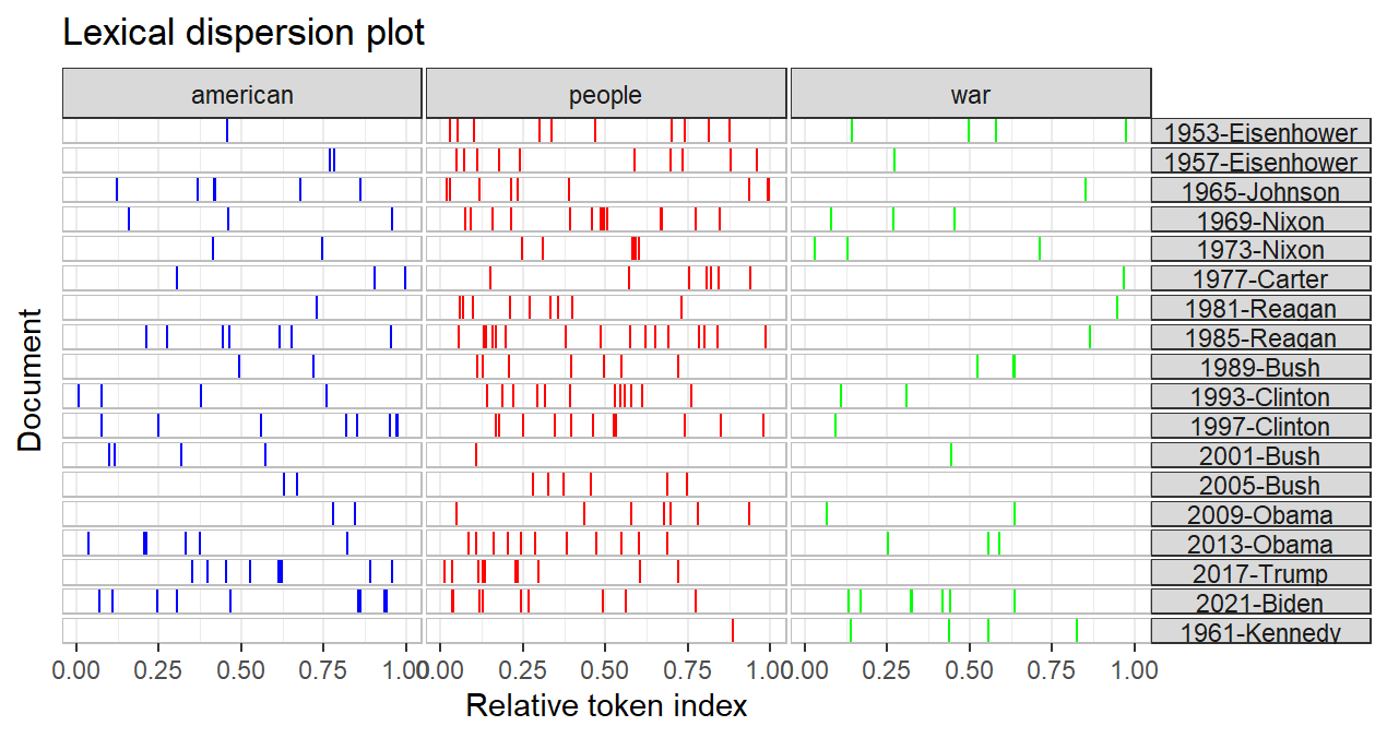 Using an x-ray plot, the frequency of specific terms can be seen across different administrations below.